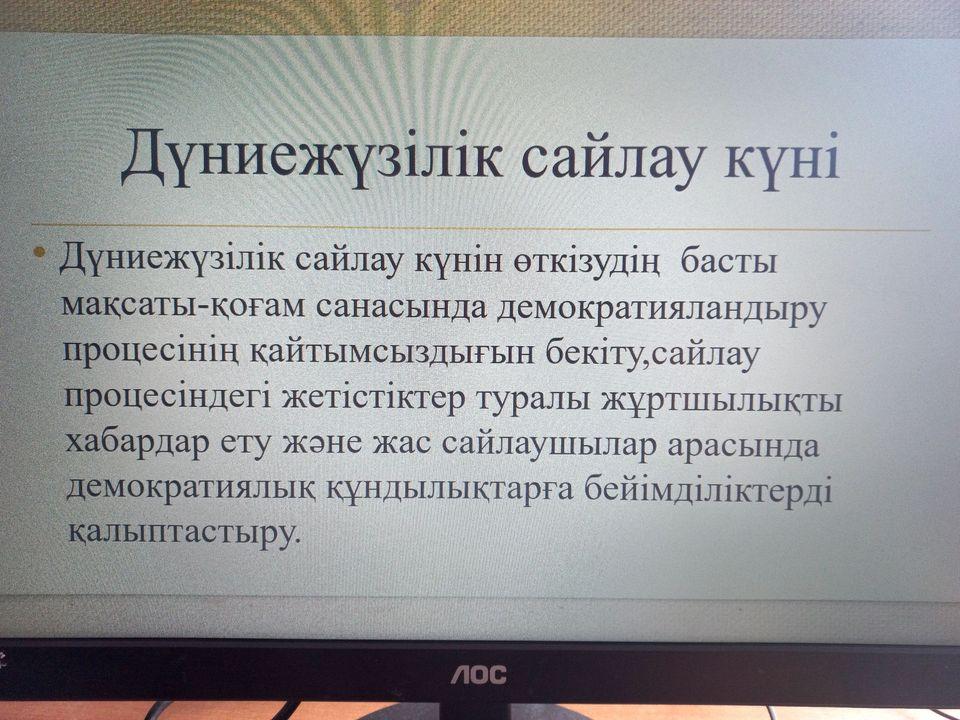 Елдегі сайлау жүйесінің қалыптасуы мен даму кезеңдері туралы жұртшылықты ақпараттандыруға,сайлаушылардың электрондық белсенділіктерін арттыруға және жас сайлаушылардың демократтиялық құндылықтарды ұсынуын қалыптастыруға бағытталған атаулы шара биыл 3 ақпанға сәйкес аталып отыр.